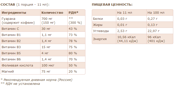 * 1 порция = 11 мл